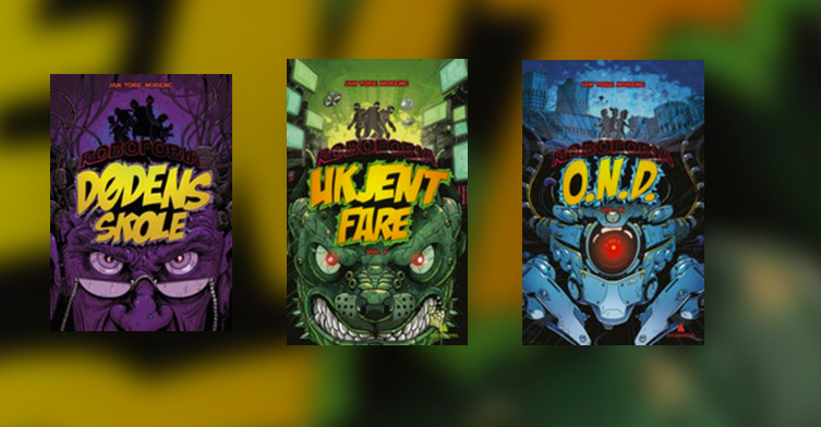 Robofobia er fartsfylt robot-spenning for mellomtrinnet. Rikard og vennene havner stadig i farefulle situasjoner og må slåss mot ulike roboter, som robotlærerene i bok nummer 1: Dødens skole.